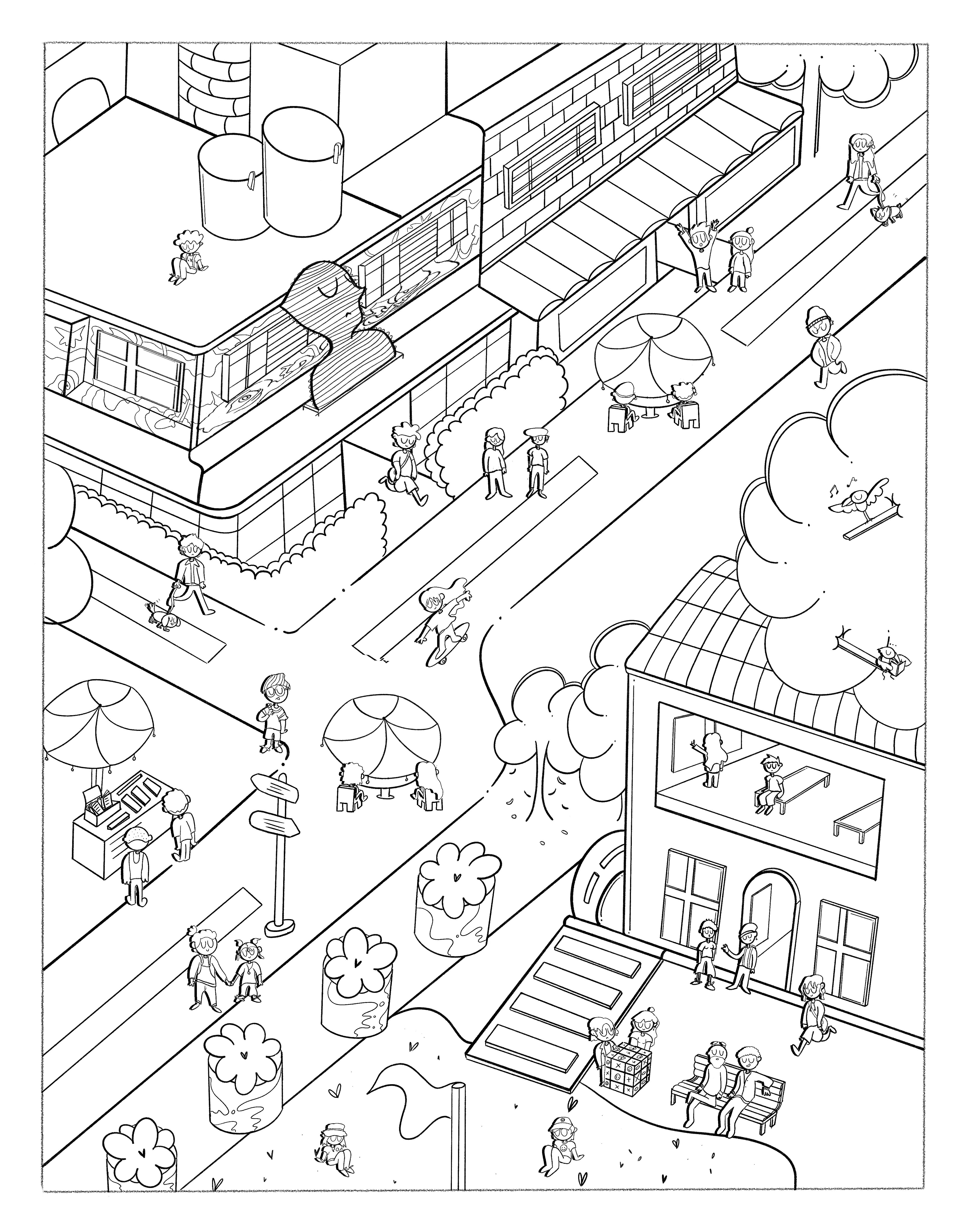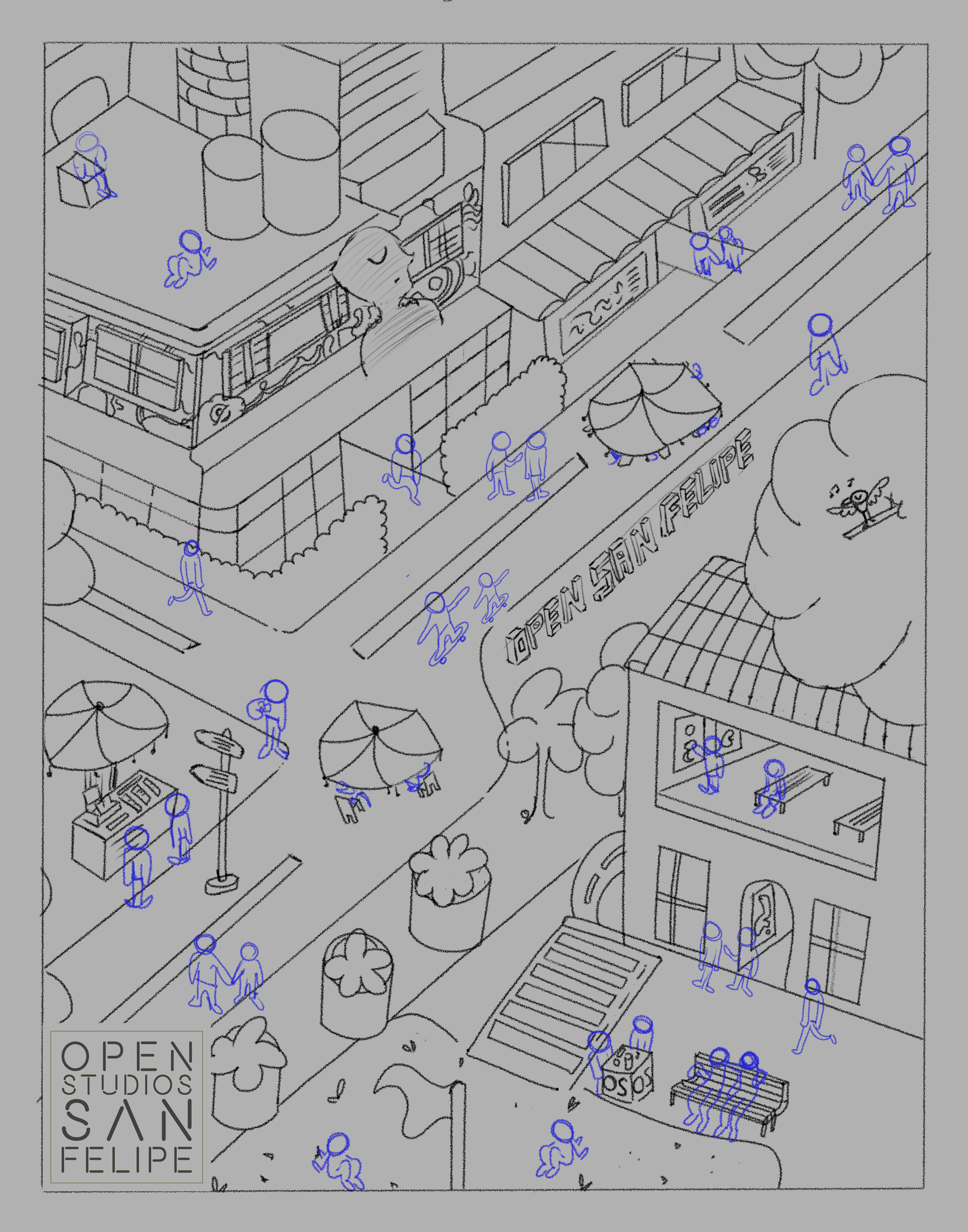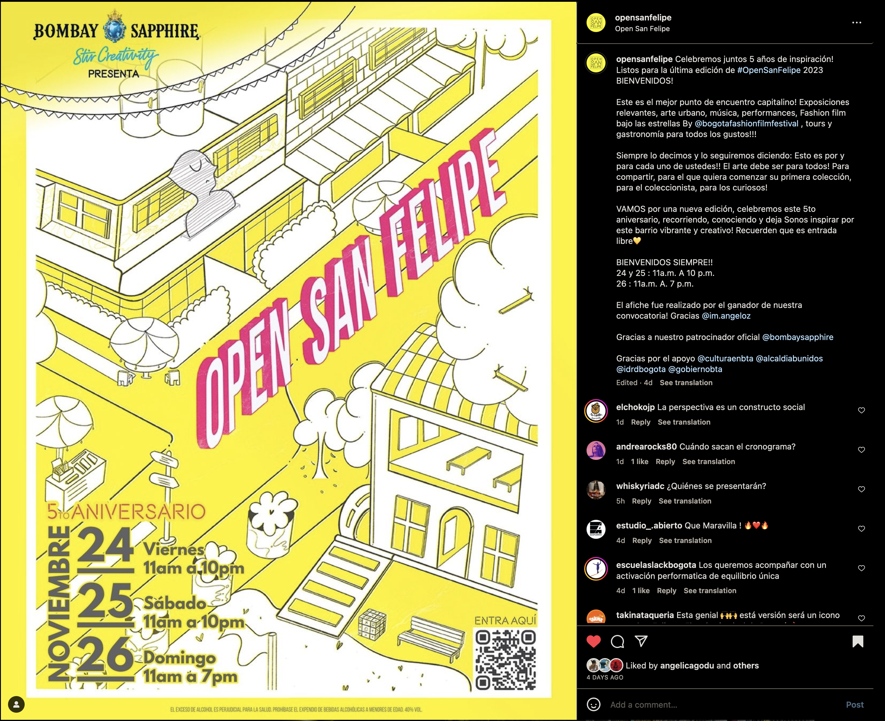 The ‘Open San Felipe’ is one of the most important artistic events in Bogotá, Colombia in which galleries, stores, artistic performances, urban art, and local food are merged in one place. I was glad to be invited to create the official poster illustration for the 5th Anniversary. This work represents the iconic corner of the neighborhood ‘San Felipe’ surrounded by people having a good time.